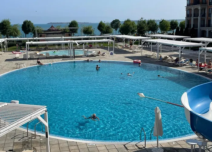 The beachfront 1-bedroom Great Studio On The Beach boasts an infinity swimming pool with a sauna in the Yurta district. The Church of St. Stephen is about 6 km away, while Action Aquapark is located about 10 minutes' drive away.